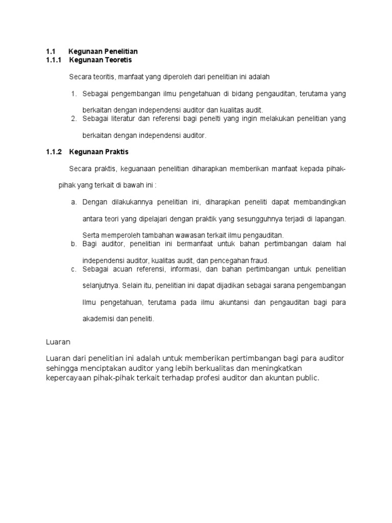 Manfaat Penelitian from imgv2-2-f.scribdassets.com Sebagai masukkan yang membangun guna meningkatkan kualitas lembaga penddikan yang ada, termasuk para pendidik yang ada di dalamnya, dan penentu kebijakan dalam. Manfaat dan tujuan penelitian | pada arya ilmiah, seperti dokumen, tesis, dan skripsi, harus dirumuskan dengan jelas sejak proposal dipresentasikan. 3.2 tujuan penelitian secara praktis. Apa perbedaan manfaat penelitian secara teoritis dan manfaat secara praktis? Pada umumnya, manfaat penelitian dibagi menjadi dua yaitu manfaat teoritis atau akademis dan manfaat praktis. Manfaat teoritis secara teoritis penelitian ini diharapkan dapat bermanfaat untuk : Dari sisi kegunaan, manfaat penelitian dibagi menjadi dua jenis, yaitu manfaat praktis dan teoritis. Secara teoritis hasil penelitian ini diharapkan dapa bermanfaat yaitu:
